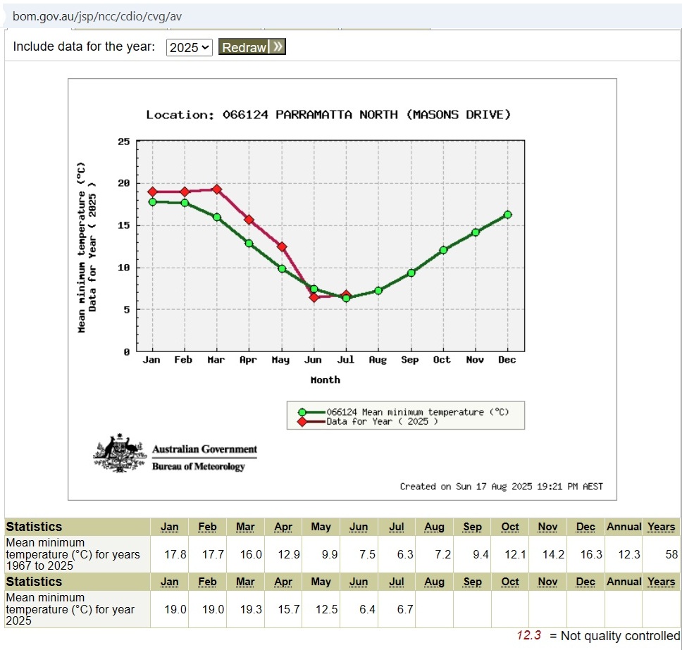 June 2025 was a bit cooler than the mean, July 2025 a touch warmer, while August data have yet to be published. Not a record cold winter as it seems.