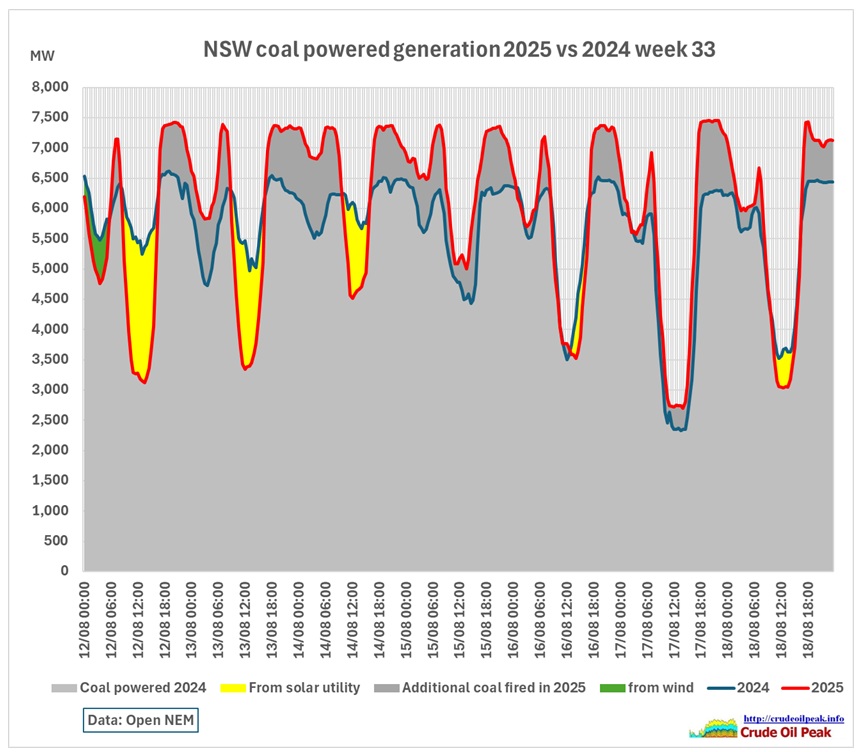 The periods of lower coal fired power in 2025 during daytime can be seen to come from solar utility.