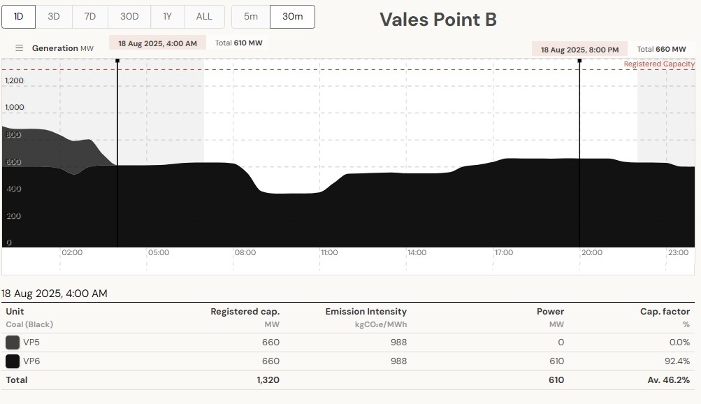 Sydney’s wintry midnight electrification 12-13th August 2025, based on coal