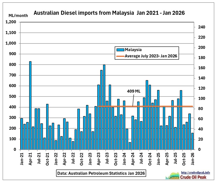 Fig 9: Australian diesel imports from Malaysia