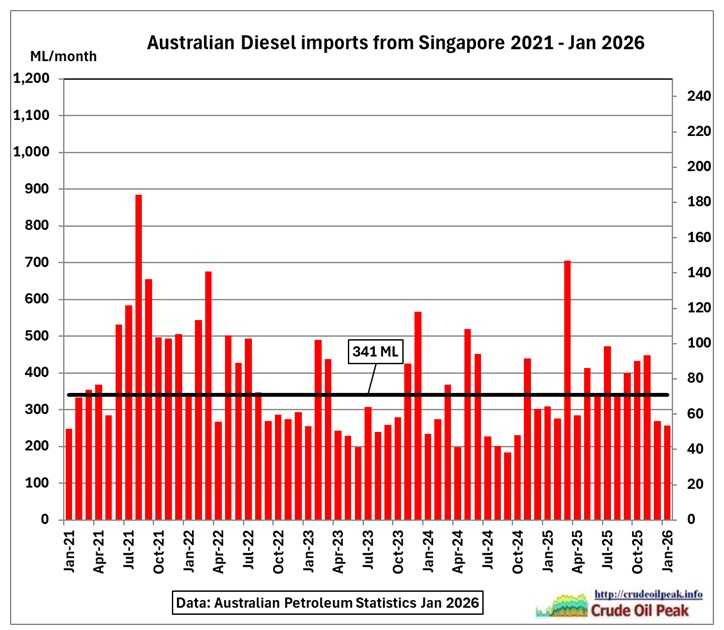 Fig 4: Australian diesel imports from Singapore