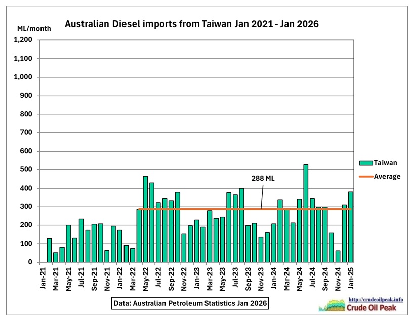 Fig 7: Australian diesel imports from Taiwan