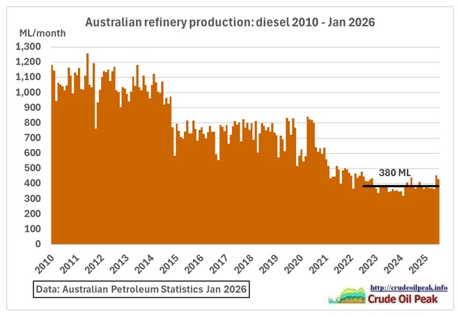 Fig 12: Australian refinery diesel production