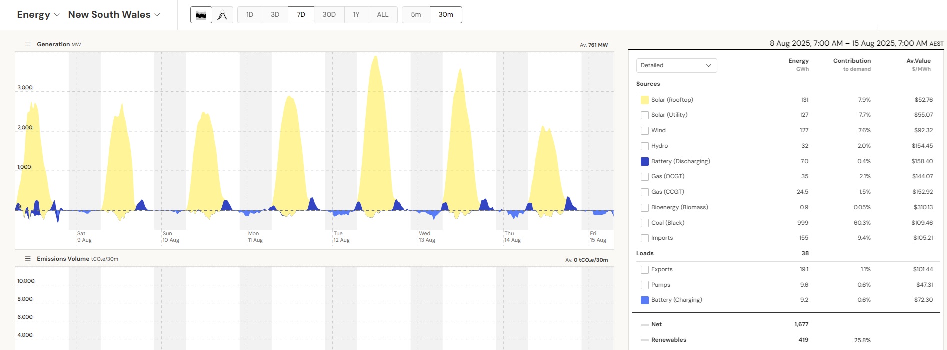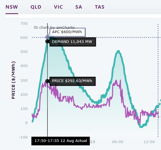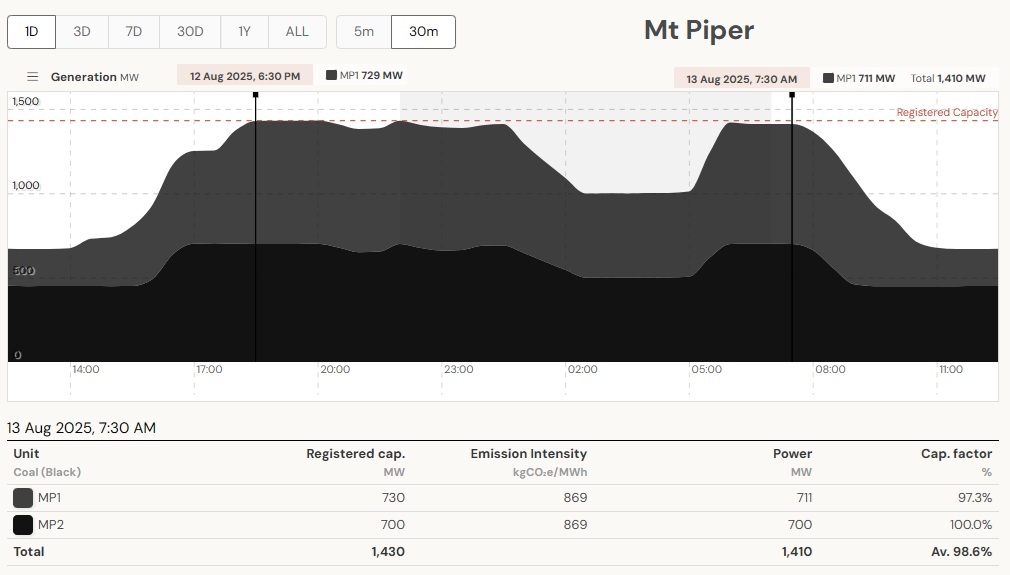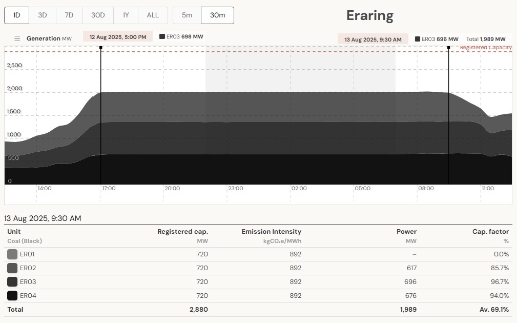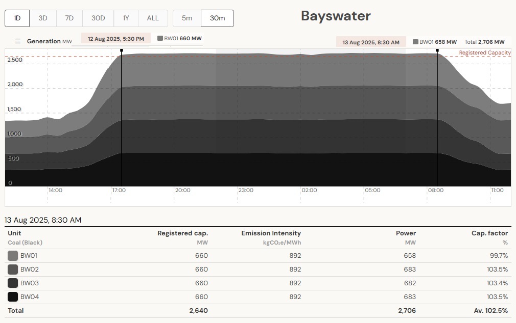 1 unit of Eraring is offline since Aug 5th. This means that the available coal plant capacity is only 7,550 MW